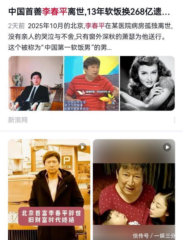 第二富婆的“因”:孤独背后的控制欲 富婆坐拥百亿万资产,却难逃晚年孤独。她选择李春平,既是情感寄托,也是对财富的掌控—用遗产绑定对方的人生,确保自己死后仍能“占据”他的精神世界。这种带着控制欲的“馈赠”,早已为日后的财产纠纷埋下伏笔:当财富的获取建立在“依附”与“承诺”之上,人性的贪婪与算计便有了滋生的土壤。