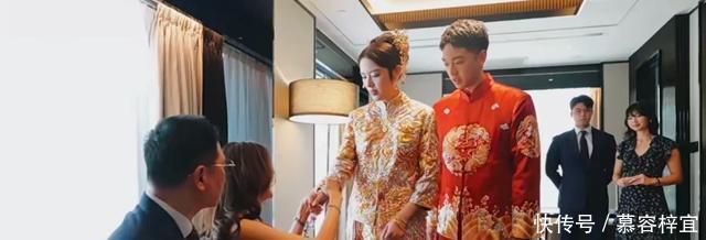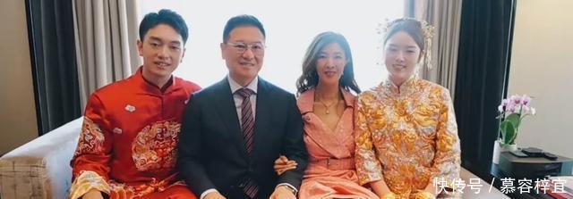 婚礼上,李嘉明盛装打扮,和丈夫坐在一起接受新人的敬茶,被继子和儿媳喊“妈咪”,全程笑得合不拢嘴,更回赠巨型龙凤手镯。