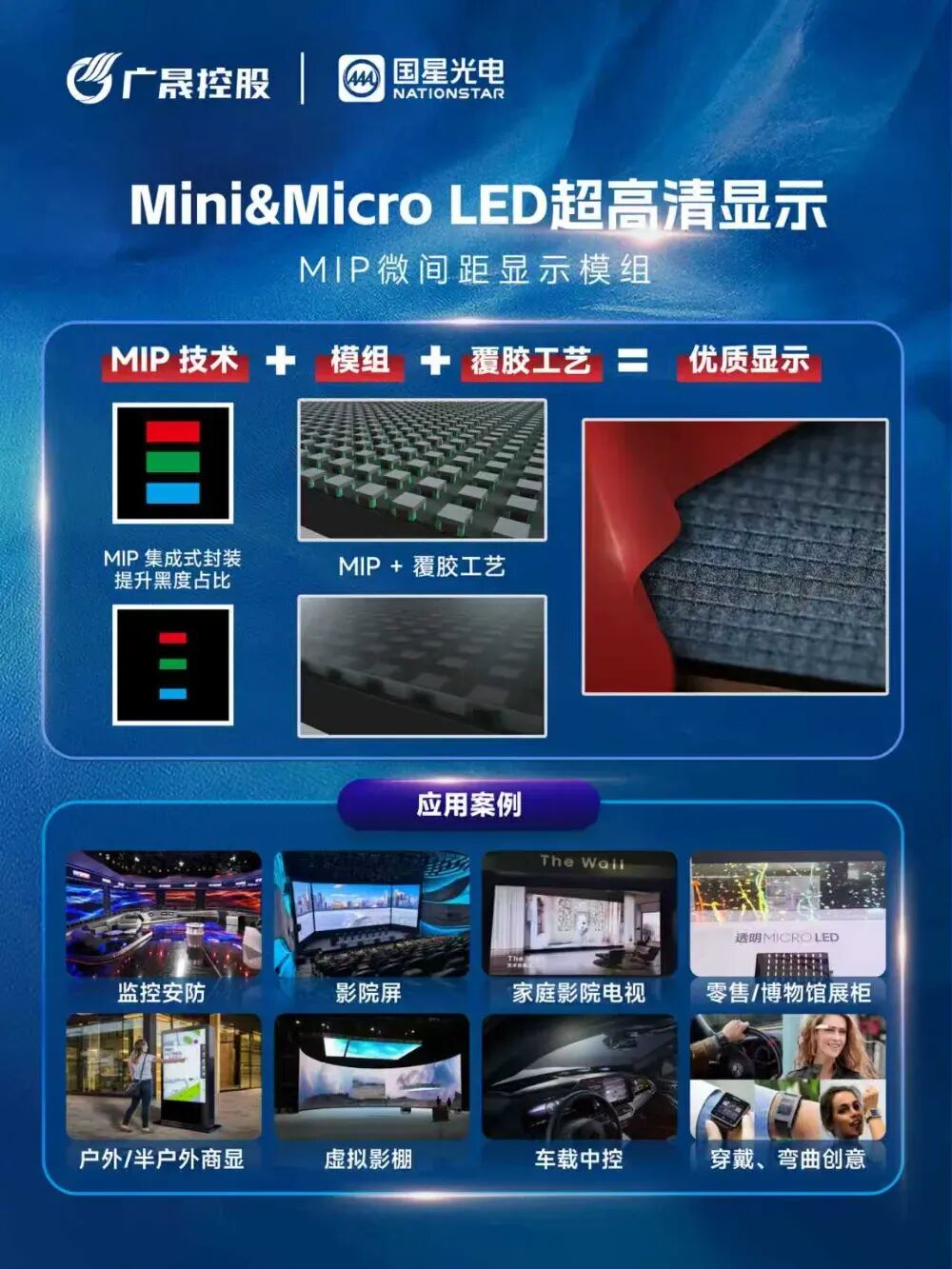 作为MLED技术的承载体之一,MIP技术正迅速走向成熟,未来随着以国星光电为代表的全产业链龙头企业在技术、产品和产能上的持续发力与全面布局,MIP技术将加速突破最后的成本与产业化壁垒,成为推动LED显示屏行业进入微间距发展时代的关键力量。