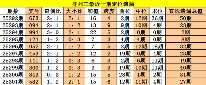 开奖回顾:排列三第2025301期奖号:582,定位直选遗漏值12期、11期、4期,遗漏总值为27期。