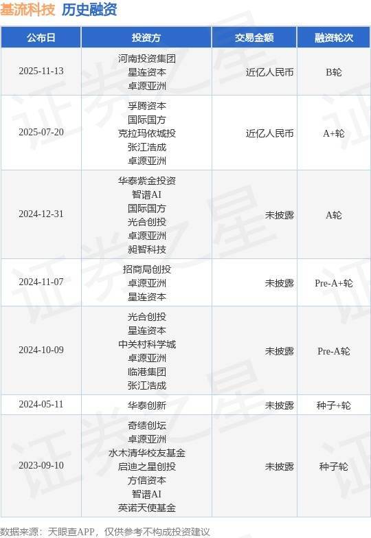 证券之星消息,根据天眼查APP于11月13日公布的信息整理,北京基流科技有限公司B轮融资,融资额近亿人民币,参与投资的机构包括河南投资集团,星连资本,卓源亚洲。