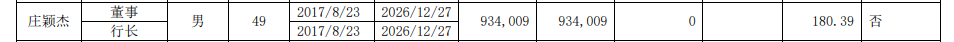 据2024年年报显示,去年,庄颖杰从苏农银行获得的税前报酬总额为180.39万。