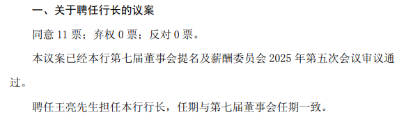 在庄颖杰辞任的同日,苏农银行聘任王亮担任该行行长一职。