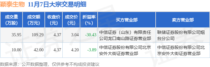 正规配资平台推荐 11月7日颖泰生物现1笔折价30.43%的大宗交易 合计成交151.29万元 正规配资平台推荐 来源:元鼎证券官网入口 网站:元鼎证券_元鼎证券登录入口_正规在线配资知识门户 查看:76 日期:2025-11-08 03:12:37